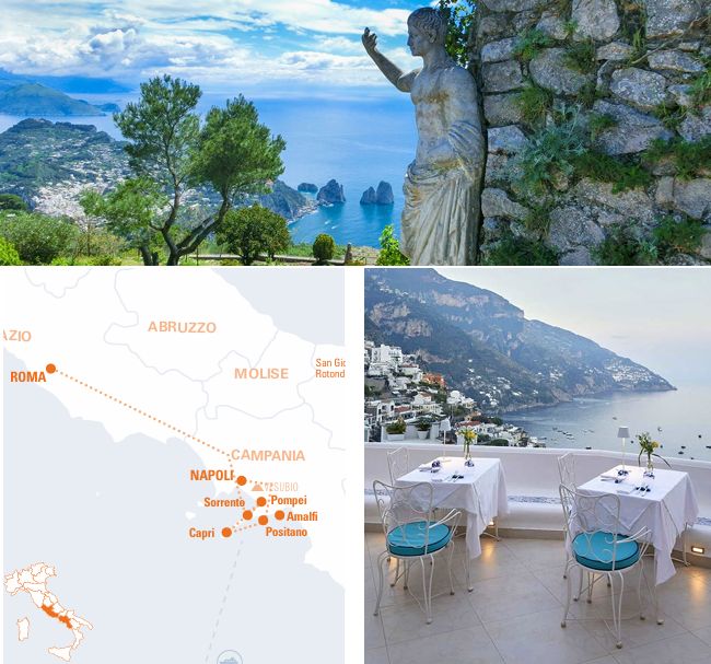 Saindo de Roma (sem hospedagem) > Sorrento > Pompéia > Capri > Positano > Nápoles